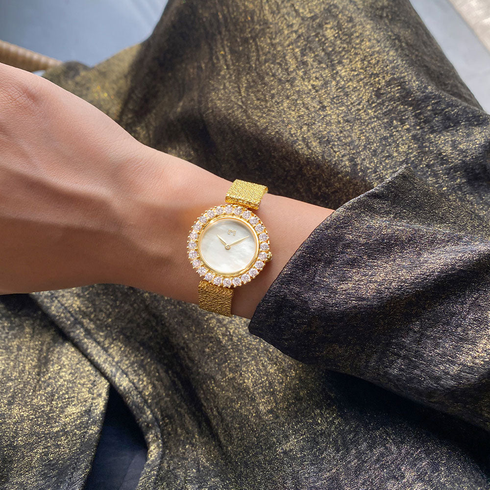 Extravagant and chic, this collection features a shiny adjustable mesh strap that can be easily adjusted to fit any size.